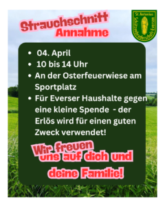 • Strauchschnittannahme am Ostersamstag den 4. April zwischen 10 und 14 Uhr