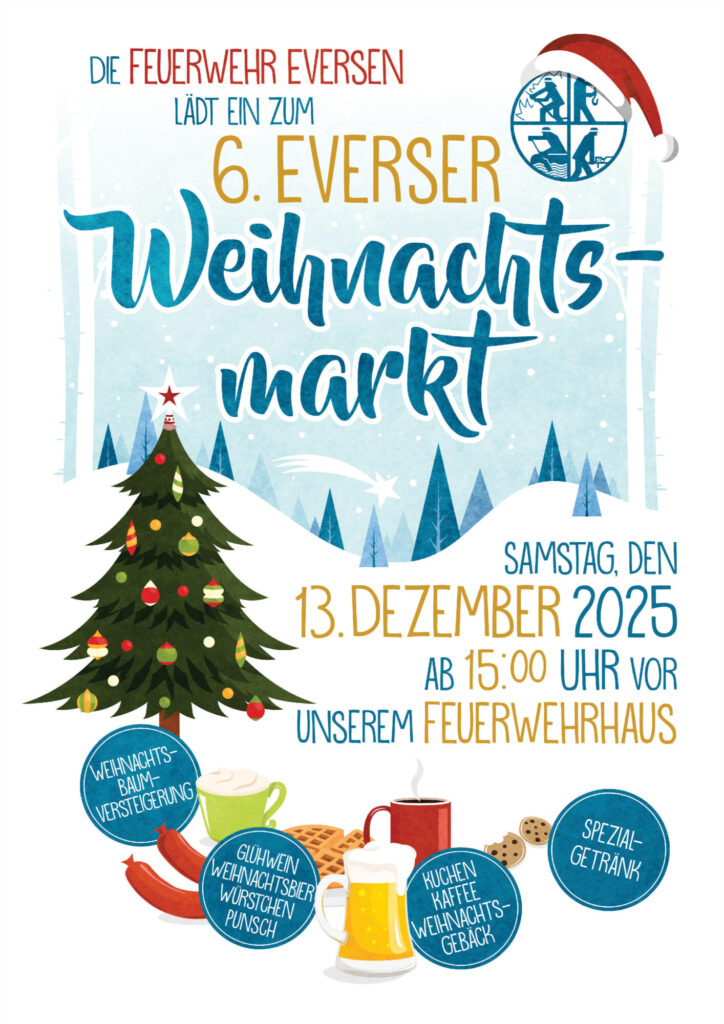 Die Feuerwehr lädt alle ganz herzlich zum 6. Everser Weihnachtsmarkt ein.